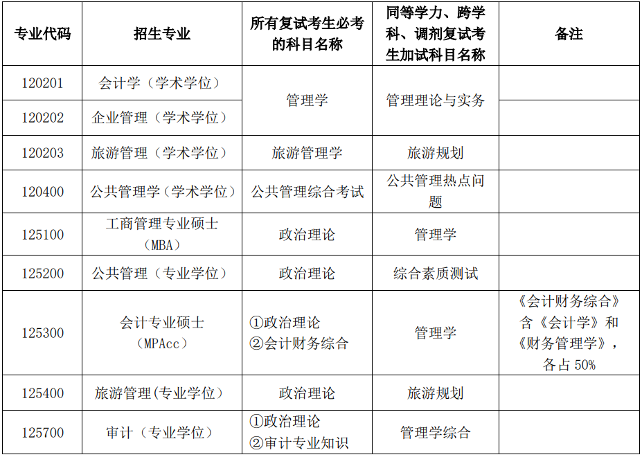 (二)报名参加工商管理、公共管理、旅游管理专业学位的人员,按下列规定执行。