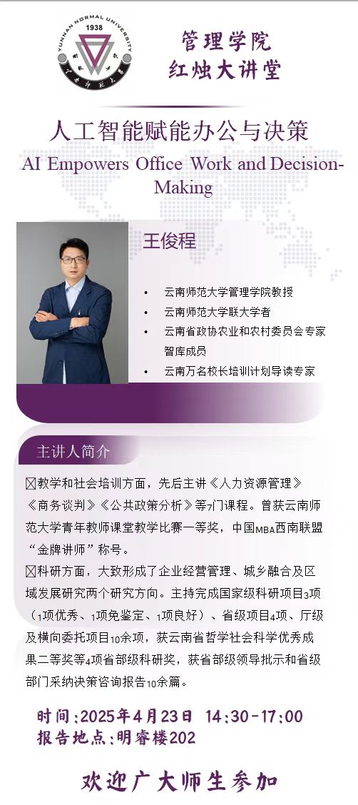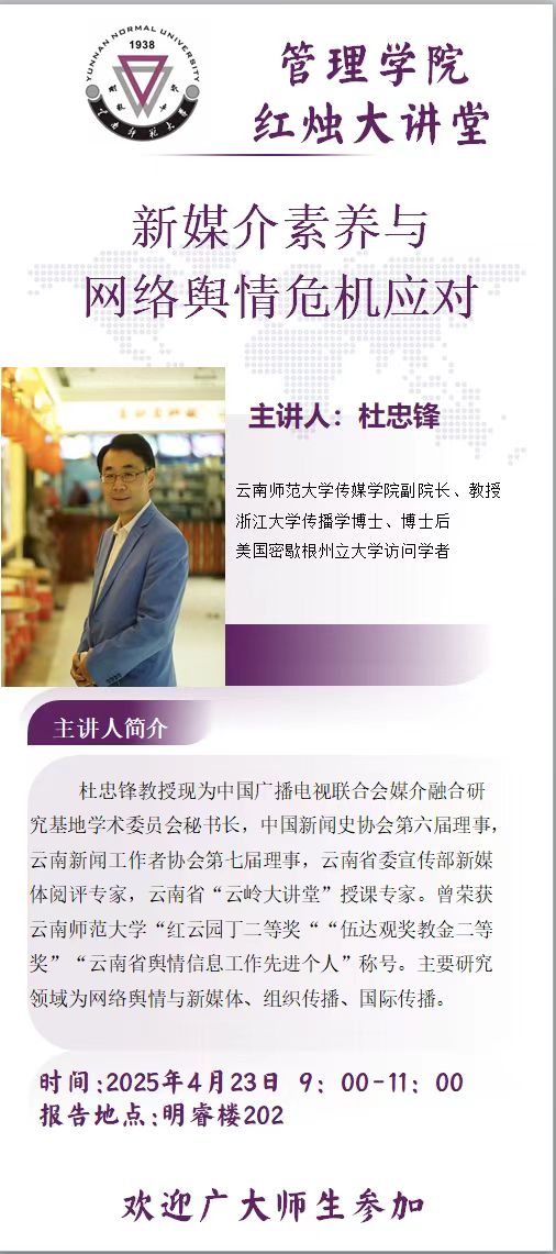 美加墨世界杯官方网站红烛大讲堂 即将迎来两场精彩讲座!从组织舆情的危机应对到人工智能的实践应用,两位学者将带来深度剖析和前沿洞见。无论你是学术研究者、行业从业者,还是对未来趋势充满好奇的学子,这里都有你不可错过的知识盛宴!