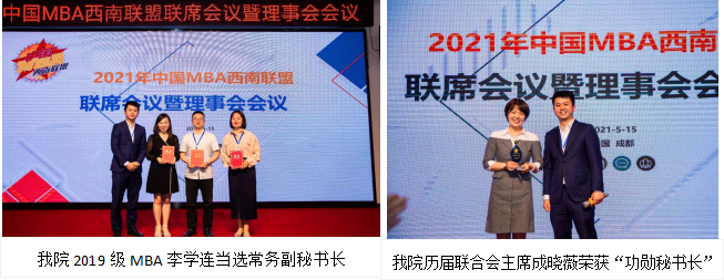 MBA西南联盟作为西南地区MBA学员沟通交流的主要平台,此次主席峰会的成功召开,进一步加强了西南地区21所高校MBA之间的交流与合作,也充分展现了各高校MBA的风采。公司学子当选常务副秘书长并获得荣誉,也体现了公司MBA人才培养的实力,公司将继续坚持“教学、科研、社会服务”三位一体的办学方针,为MBA教育发展做出贡献。
