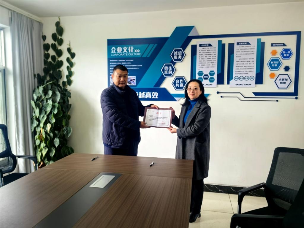 仪式签约后,李艳副经理为沈贵有董事长颁发了校外导师聘任书。