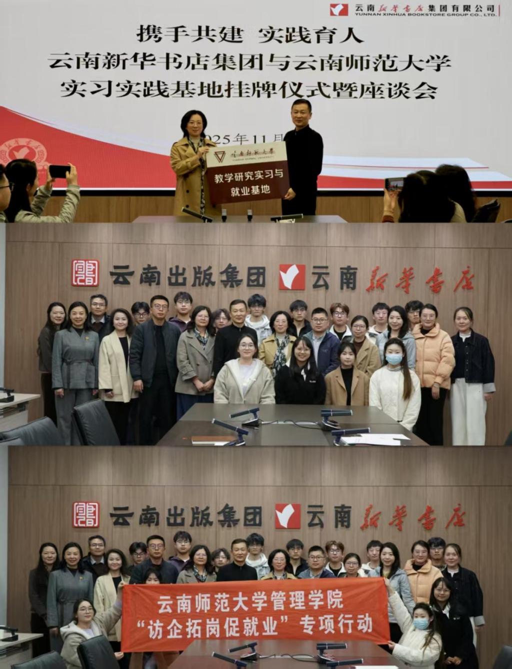 11月4日,公司与云南新华书店集团在云南新华书店集团总部举行了实习实践基地挂牌仪式暨座谈会。云南新华书店集团党委副书记、总经理唐庆,党委委员、副总经理虞跃等相关领导,美加墨世界杯官方网站经理李艳、党委副书记孔迎春、副经理周宁等相关院领导、老师及10余位同学出席了仪式及座谈会。