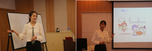 每位参赛选手按照讲课、说课、评委问答的流程依次比赛。选手们在30分钟的展示中热情自信,讲课内容丰富有趣,涵盖了博弈论、市场营销等管理类课程的知识,并与生活结合用实际案例进行讲解。同时,选手们通过互动问答、视频动画等方式引发员工的思考,模拟了实际课堂中员工可能提出的疑问,展现了选手们较好的教学技能,也体现了公司商科员工较高的综合素养。