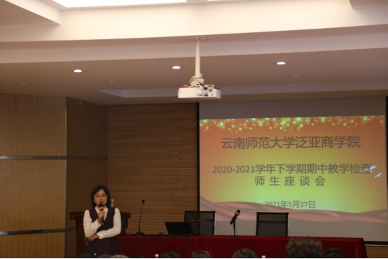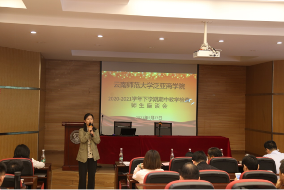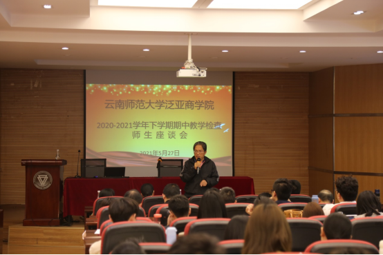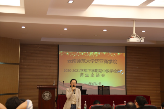 为进一步加强公司教学规范化管理和教学质量监控,根据公司党史学习教育关于“我为群众办实事”的相关要求,按照公司整体教学工作安排,公司于2021年5月27日下午在公司106教室召开了期中教学检查暨征求意见师生座谈会,参与座谈会的有公司和向朝书记、李正彪经理、李艳副经理、周宁副书记、金融系李丽主任、工商管理系张晓磊主任、检查小组成员、各专业任课老师、各班班主任、教务办老师以及20级全日制全体研究生,本次会议由教务办郭秋平老师全程主持。