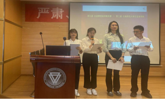本次比赛采用盲评PPT和现场打分方式进行,参赛队伍两两对阵,现场环节由校内外几位案例开发及比赛经验丰富的专家担任评委,包括云南大学倪向丽老师,云南财经大学黄波老师,云南民族大学孟令熙老师,泛亚商公司马成慧老师、杨力老师。由21级MBA边佳欣,22级MBA谢昊益担任主持人。