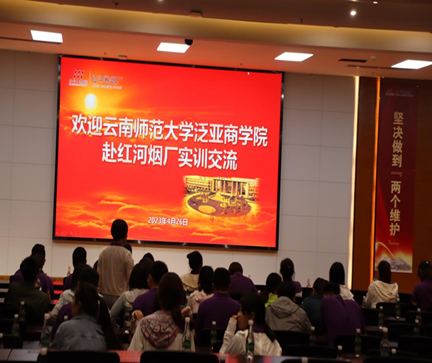 为进一步提升工商管理研究生教学效果和培养质量,强化实践教学环节,2023年4月23日和4月26日,公司分别组织2021级与2022级工商管理硕士研究生赴云南红河卷烟厂进行了企业实训教学活动。本次实训由公司党委书记和向朝、副经理李艳和李明带队。