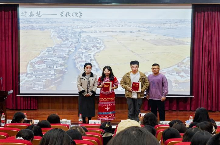经过一个多小时的激烈比拼和公正评判,最终来自2023级的过嘉慧同学凭借其深情的朗诵和出色的表现,荣获了此次大赛的一等奖。通过配乐视频来精彩演绎她的原创诗歌《秋收》,打动了在场的每一个人。同时获得本次大赛一等奖的是2024级的陈柏桦同学,他独特的嗓音获得评委们的一致好评。此外,获得此次大赛二等奖的是蒋砺、施蕊、王煜琪,三等奖的是陈佳、唐溪梓、马静远、陈昱元、郭红琳、代书宁、向微。