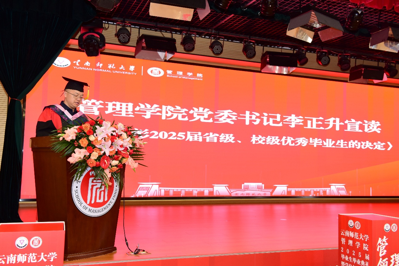 李正升书记宣读了《关于表彰2025届省级、校级优秀毕业生的决定》,并与李艳经理、李明副经理、夏百川副经理共同为优秀毕业生代表颁奖。徐锐副董事长为在第十四届商公司沙漠挑战赛中卫冕“金沙鸥”奖的“沙14”团队代表颁奖,肯定他们用脚步诠释“刚毅坚卓”校训的精神。