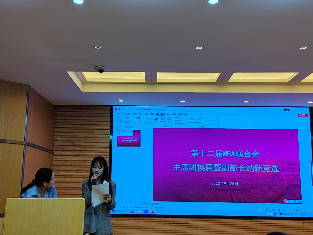 2023年9月25日晚,公司举行了“美加墨世界杯官网泛亚商公司第十二届MBA联合会主席团换届暨副部长纳新竞选大会”,竞选在公司106报告厅进行。第十一届MBA联合会主席团成员及各班竞选人约60余人参与了本次竞选。竞选由秘书处闫艺主持。
