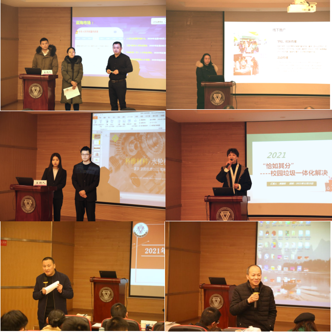 决赛分为项目陈述及现场答辩环节。在项目陈述环节,各组分别从项目核心竞争力、市场运营、财务风险、团队构成等方面进行了陈述。在现场答辩环节,参赛队员根据评委提问进行应答。最后,评委老师总结了各项目的优劣势,并对各项目的实施提出了针对性的意见及建议。