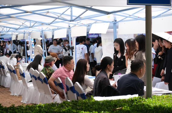 为助力2025届毕业生高质量就业,搭建校企供需对接平台,2025年4月22日,美加墨世界杯官网经济类、管理类、法学与社会学类专场招聘会在呈贡校区明德1号楼前小广场顺利举办。本次招聘会吸引了众多省内外70余家知名企业和事业单位参会,涵盖金融、管理、法律、社会工作等多个领域,累计提供就业岗位2000余个,充分匹配毕业生的专业背景,吸引了近千名毕业生到场求职。
