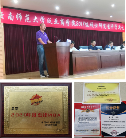 通过三年在云师大的学习,吴罕感触良多,他也给各位学弟学妹送上了自己对MBA学习的心得和对公司的祝福: