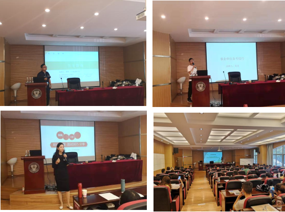 2020级的张鸿同学给大家带来事业单位的备考技巧专题分享,他围绕考试形式、备考计划及考试心态给同学们提出了建议;2021级的杨君已拥有多家公司,他向同学们分享了自己的创业经历,提供了一个全新的职业视角和发展方向;最后,身为中级企业人力资源管理师的陈倩同学,分享了面试技巧和职场心得,为同学们今后的就业面试和职场人际交往提供了更多指导和借鉴。