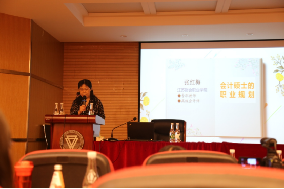 第二阶段为就业交流分享环节。有着20年以上从业经验的2019级集中班张红梅,她结合自身经历告诉同学们“学无止境”,并就如何面试和适应新环境等方面进行了分享。她提出了学历+证书的模式,鼓励在校员工考证以提升就业竞争力。