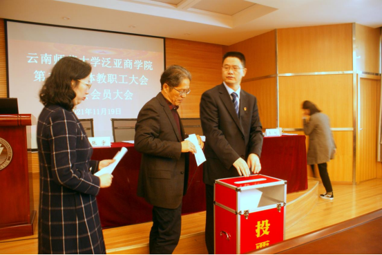 会上,首先经理李正彪同志作公司近5年行政工作报告和财务工作报告,并经过全院教职工审议表决后通过。随后,公司工会主席张宇同志作泛亚商公司工会第一届委员会工作报告及工会经费使用情况报告,并经过全院教职工审议表决后通过。最后进行工会委员会换届选举,在公司党委的领导下,经参会全体教职工无记名差额投票选举,最终公司第二届工会委员会正式诞生。